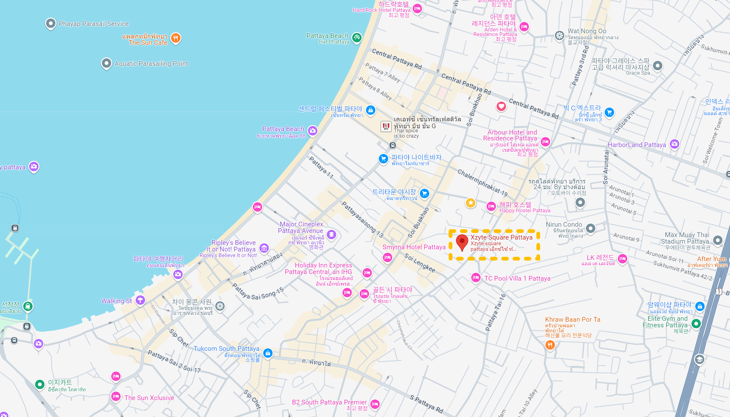 위치는 파타야 3rd에 있는 Xzyte Square에 위치하고 있고 여기는 area39 말고도 비슷한 라이브바가 몇곳이 영업을 하고 있습니다. Xzyte Square라고 말하면 현지인 또는 자주 방문하는 방문객은 알겠지만 파타야에 처음 방문한다면 어디인지 찾기는 쉽지는 않을꺼라고 생각이 듭니다. 단순하게 위치를 말하면 트리타운 근처이니 트리타운 근처에서 숙박을 한다면 구글지도를 켜고 방문하길 바랍니다.